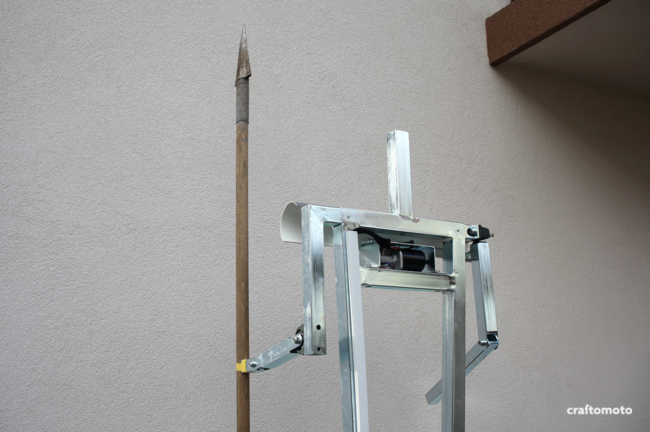 A PVC pipe was cut to make a protective shield for the mechanism.