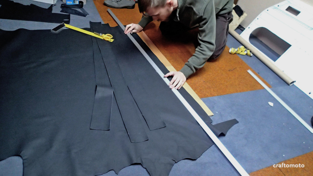 I cut out the remaining leather on previously measured pieces.
