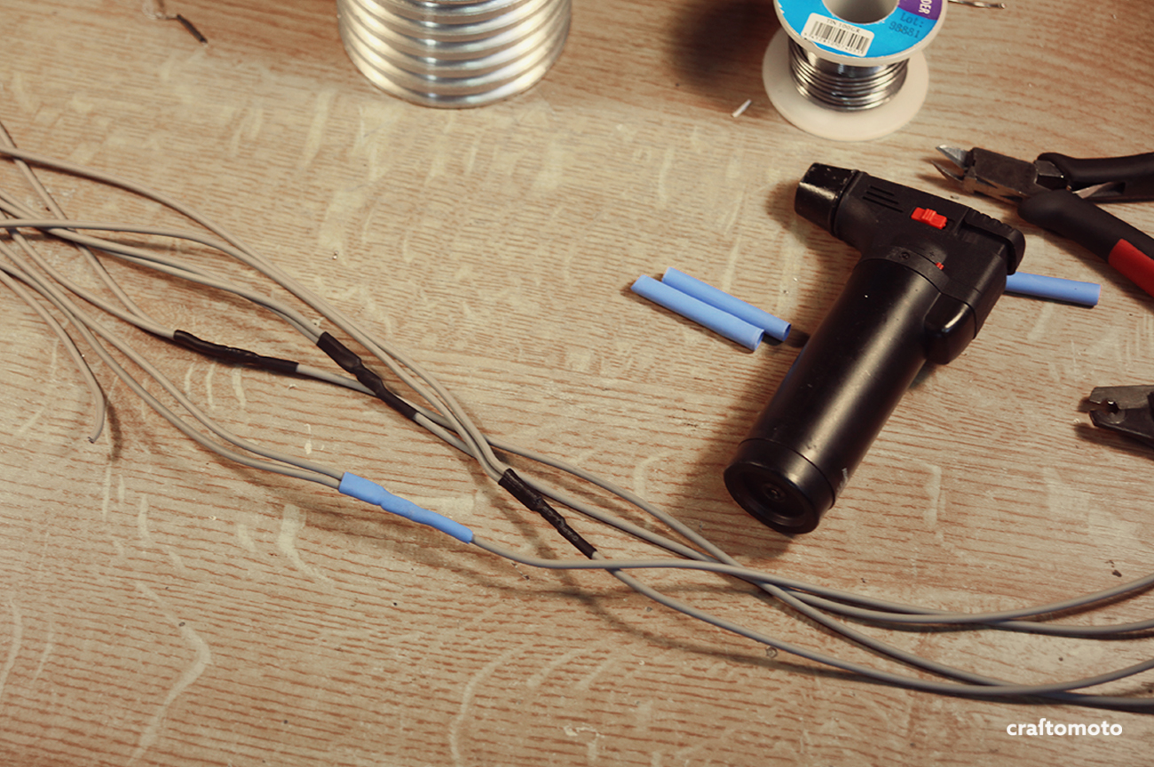 After measuring the wire lengths, the soldering begun. I used double layer of the heat shrink insulation.