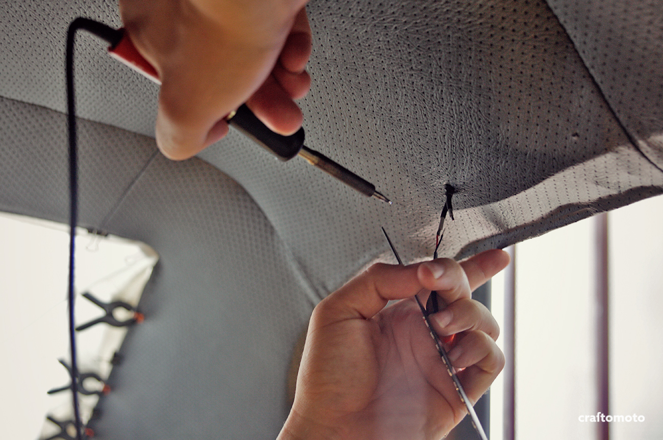 After soldering, I put over a heat sink insulation, and electrical tape for redundancy. Also, this car cabin cable fabric insulator was put over everything. A bit of an overkill, but the whole project is like that.