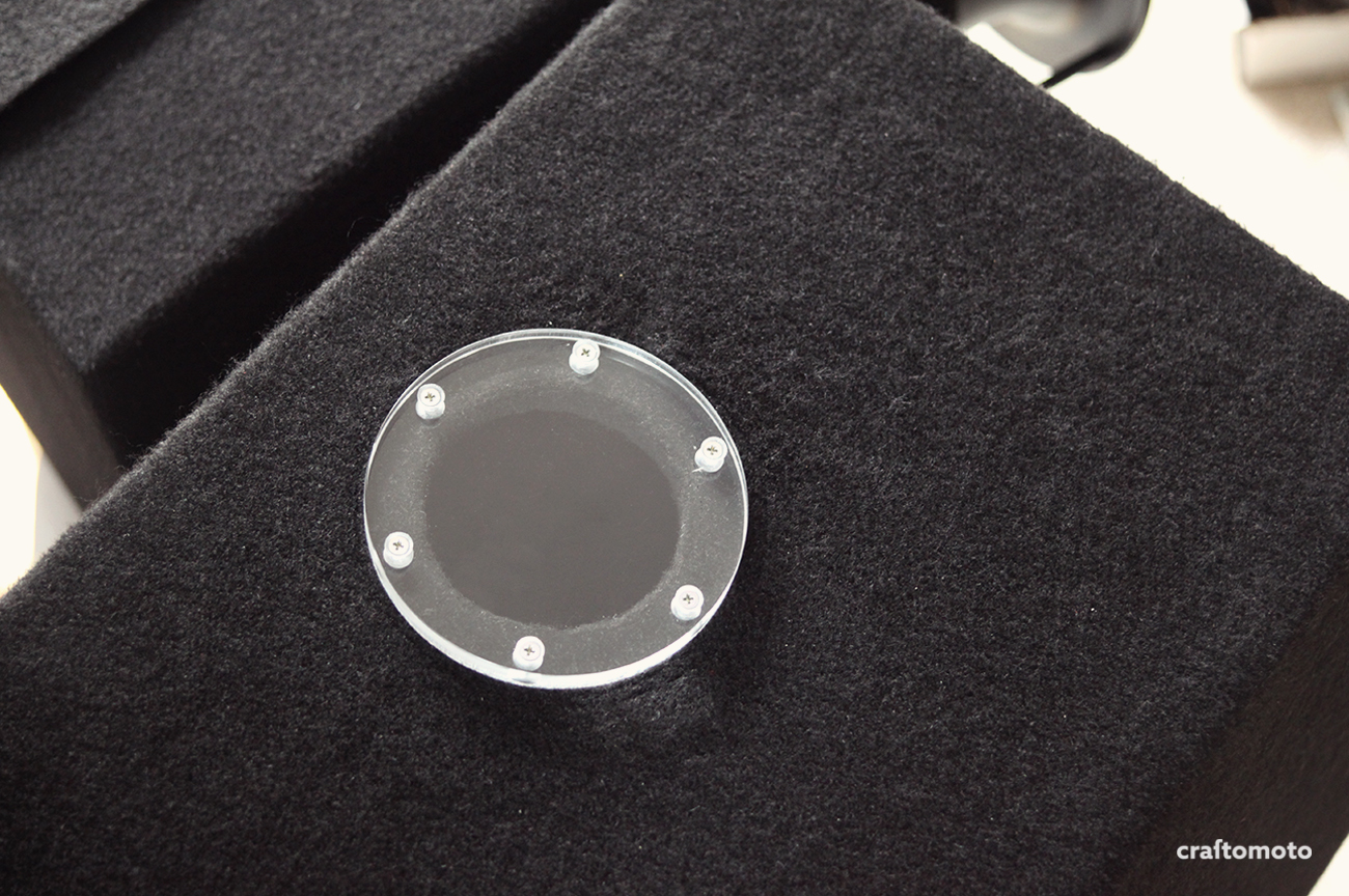 Since only the top of the enclosures will be visible, the inspection port was created out of 10 mm acrylic. I almost left it like that, because it’s a trunk after all, but Goga insisted on consistency trough the build, and demanded to make this part more pretty :)