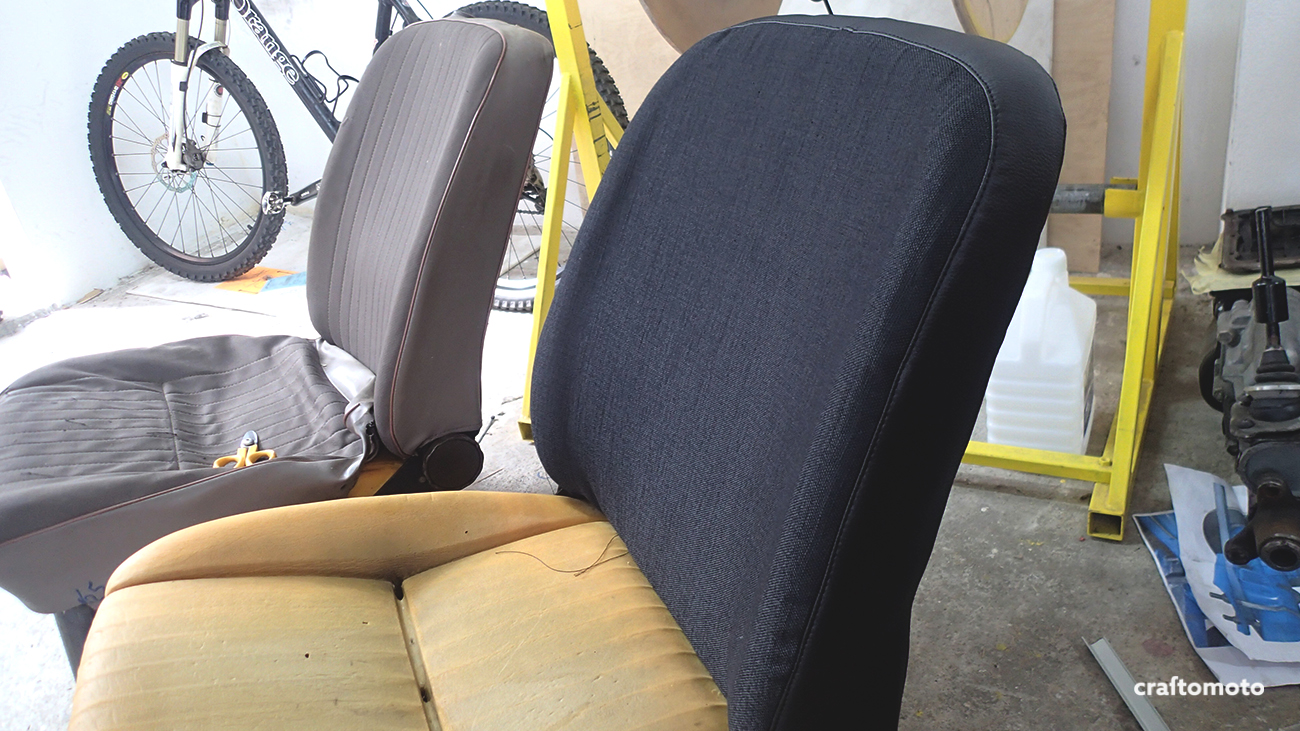 We wanted to give the seats a cozy armchair feel, so upholstery cotton was glued everywhere.