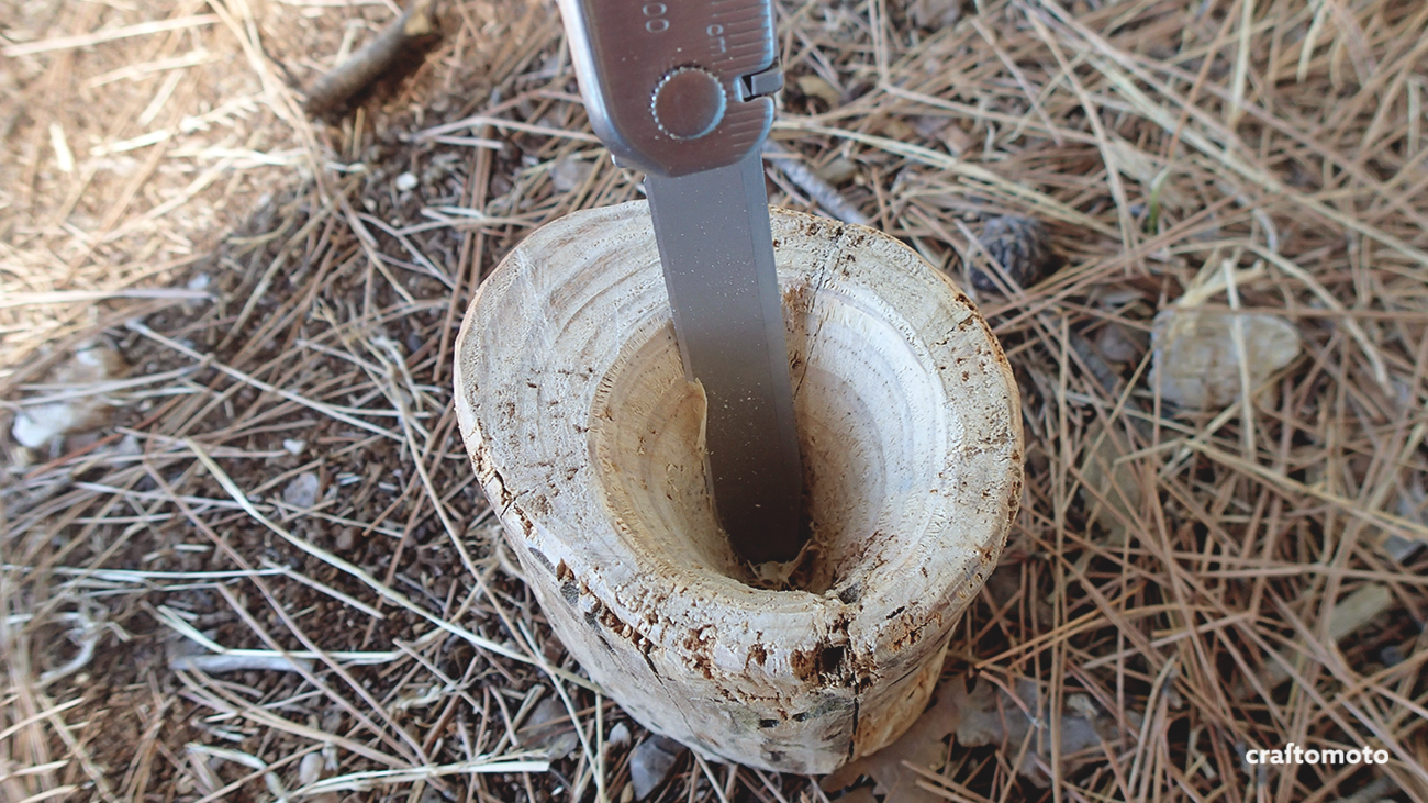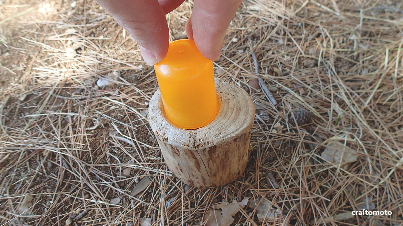 The next step was drilling the leftover part with the knife, while checking regularly for the roundness with the sunscreen cap.